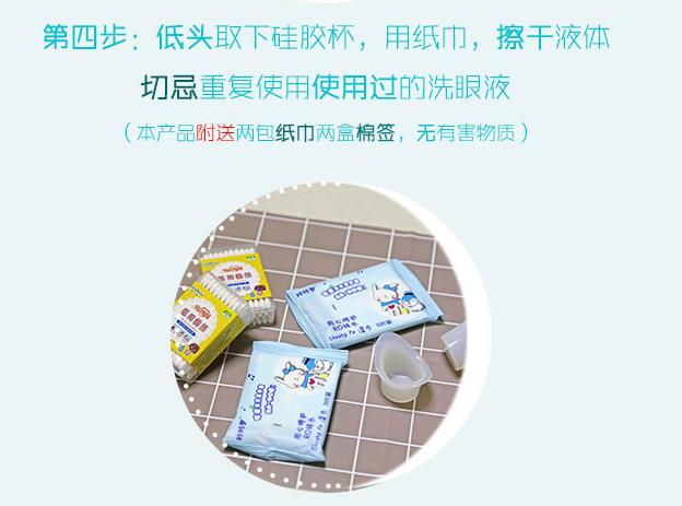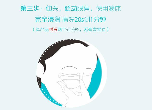 (剛開始可能不適應,過一會兒就好了)睜開眼睛,轉(zhuǎn)轉(zhuǎn)眼珠,這樣清洗比較到位。慢慢低頭,取下洗眼杯,用紙巾擦拭露出護理液體。凈水清洗眼杯,同法洗另外一只眼睛。