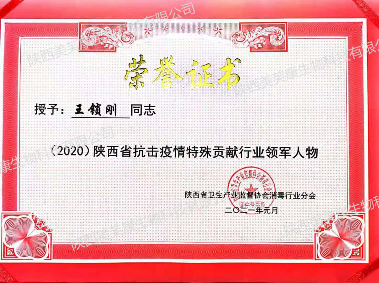 2021年1月,陜西省衛(wèi)生產(chǎn)業(yè)監(jiān)督協(xié)會(huì)消毒行業(yè)分會(huì)授予陜西美芙康集團(tuán)“(2020)陜西省消毒產(chǎn)品行業(yè)優(yōu)秀企業(yè)”榮譽(yù)證書,授予我司制造部總經(jīng)理王鎖剛同志“(2020)陜西省抗擊疫情特殊貢獻(xiàn)行業(yè)領(lǐng)軍人物”稱號(hào),并頒發(fā)證書。