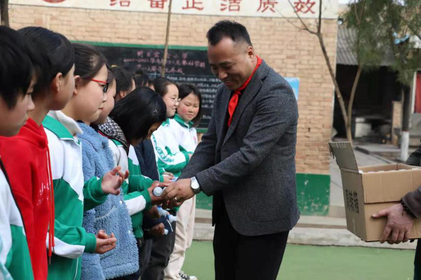 活動(dòng)期間,陜西美芙康董事長(zhǎng)呂東豐先生親自參與到學(xué)生的歡樂(lè)游戲當(dāng)中,學(xué)生們還親自為他戴上紅領(lǐng)巾,敬隊(duì)禮,呂董仿佛回到自己年幼學(xué)生階段,感動(dòng)的熱淚盈眶。