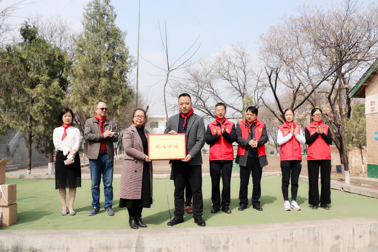 明日實(shí)驗(yàn)小學(xué)校長(zhǎng)牛明珠向陜西美芙康集團(tuán)贈(zèng)送“愛(ài)心企業(yè)”牌匾
