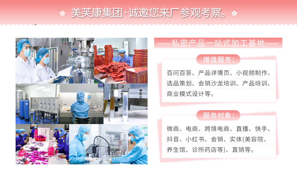 上面說(shuō)的是婦科凝膠代工貼牌 oem的相關(guān)流程,陜西美芙康主要從事婦科凝膠、婦科洗液、膏體噴劑的生產(chǎn)和加工,歡迎各地朋友前來(lái)洽談合作。