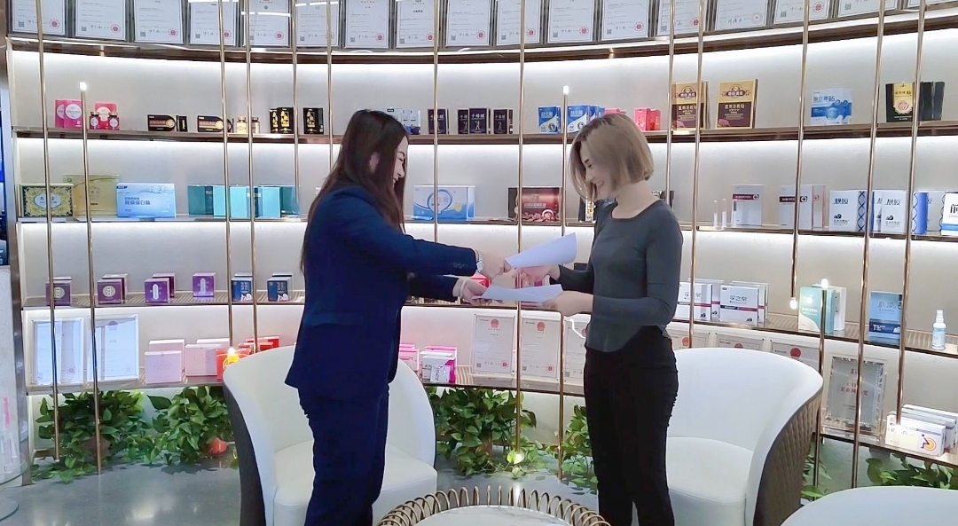 參觀完工廠,又來(lái)到位于西安市未央?yún)^(qū)的公司來(lái)參觀公司,張經(jīng)理給客戶講述有關(guān)產(chǎn)品的相關(guān)信息,比如:私護(hù)產(chǎn)品、眼部產(chǎn)品等,最后雙方達(dá)成了共識(shí),最后簽訂了合同,雙方臉上都是喜氣洋洋的。