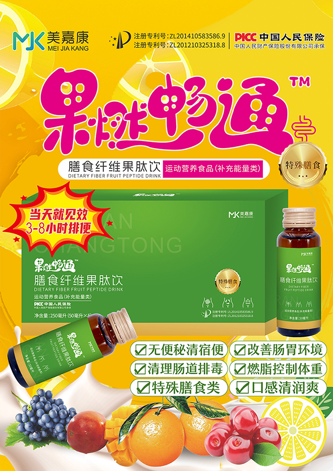 為了更好的解決廣大朋友的這一煩惱,美芙康生物經(jīng)過數(shù)月研發(fā),終于研發(fā)出現(xiàn)一款膳食纖維果肽飲,50ml*5瓶,不僅由PICC承保,還是專利產(chǎn)品,能幫助維護(hù)身體平衡,守護(hù)腸道健康。